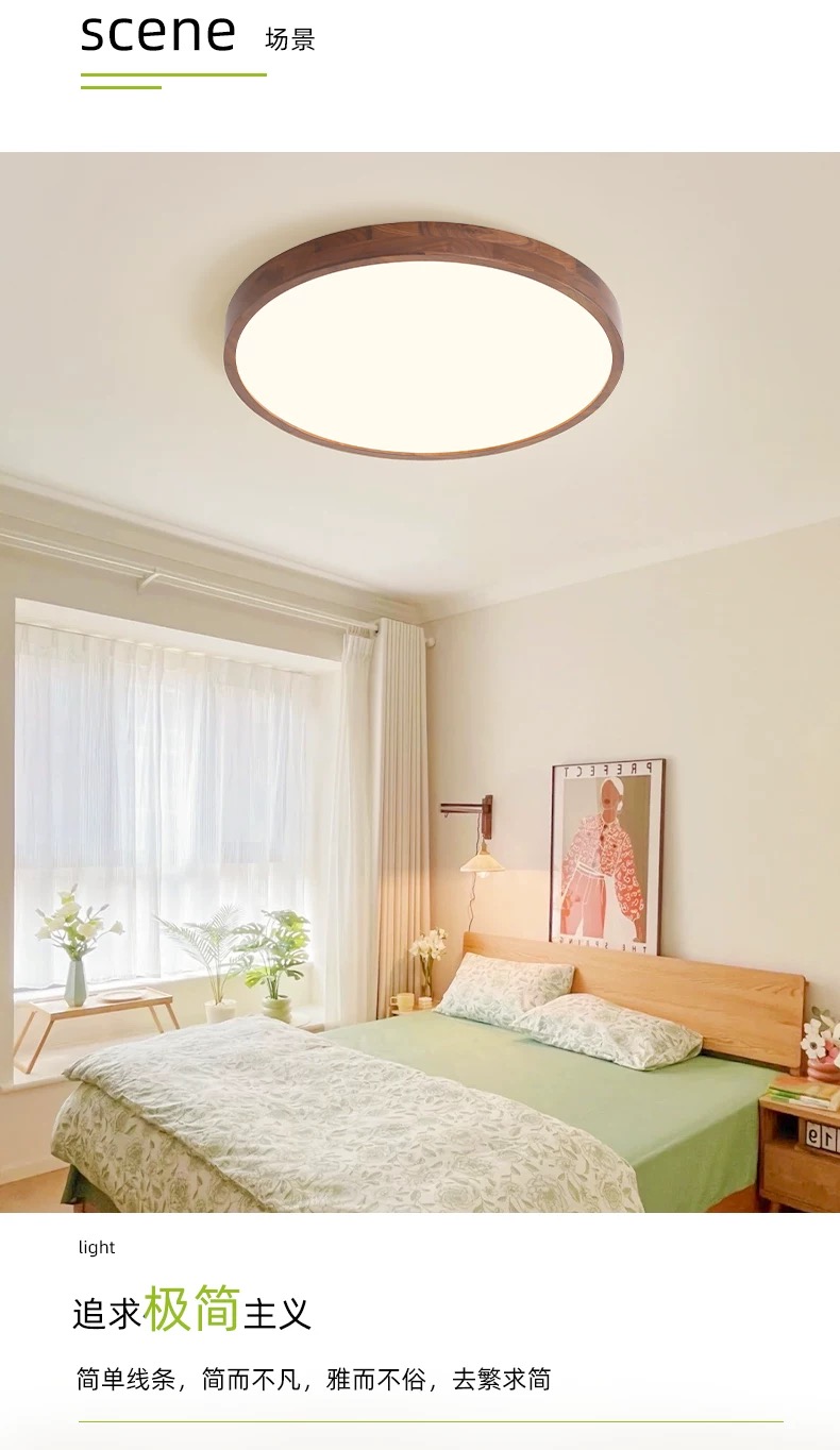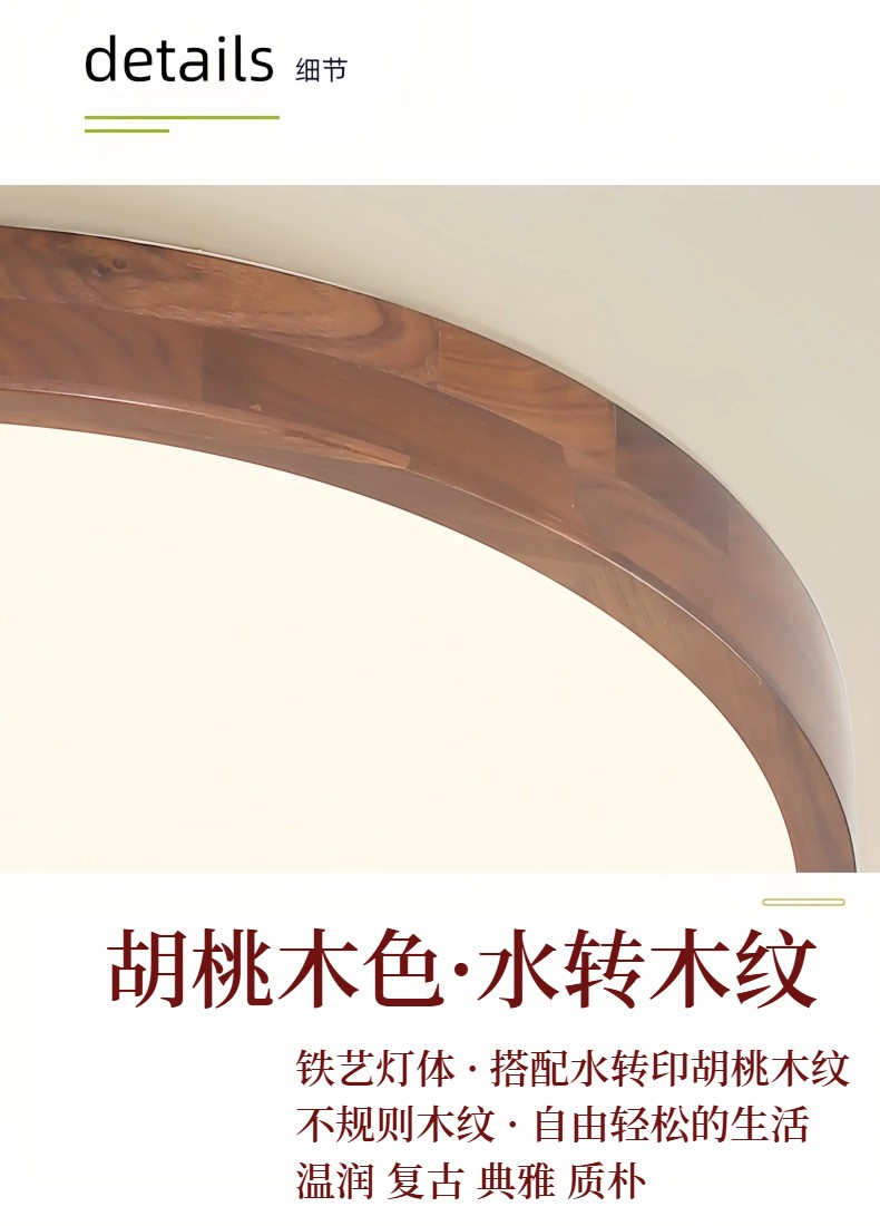 美式复古主卧室灯书房间吸顶灯胡桃木色灯中古风餐厅客厅灯具843