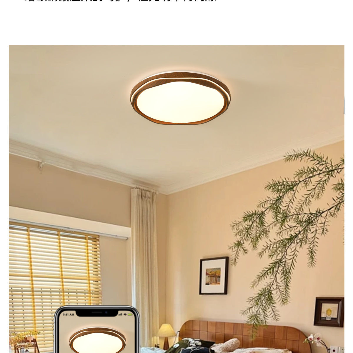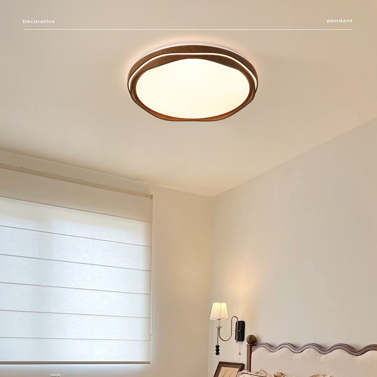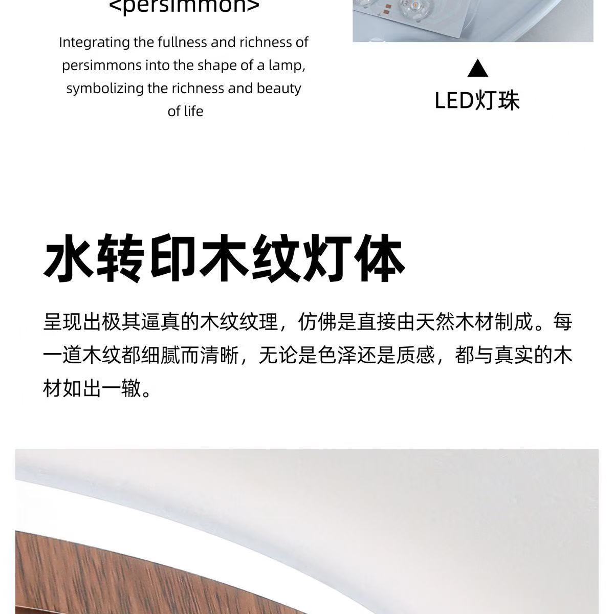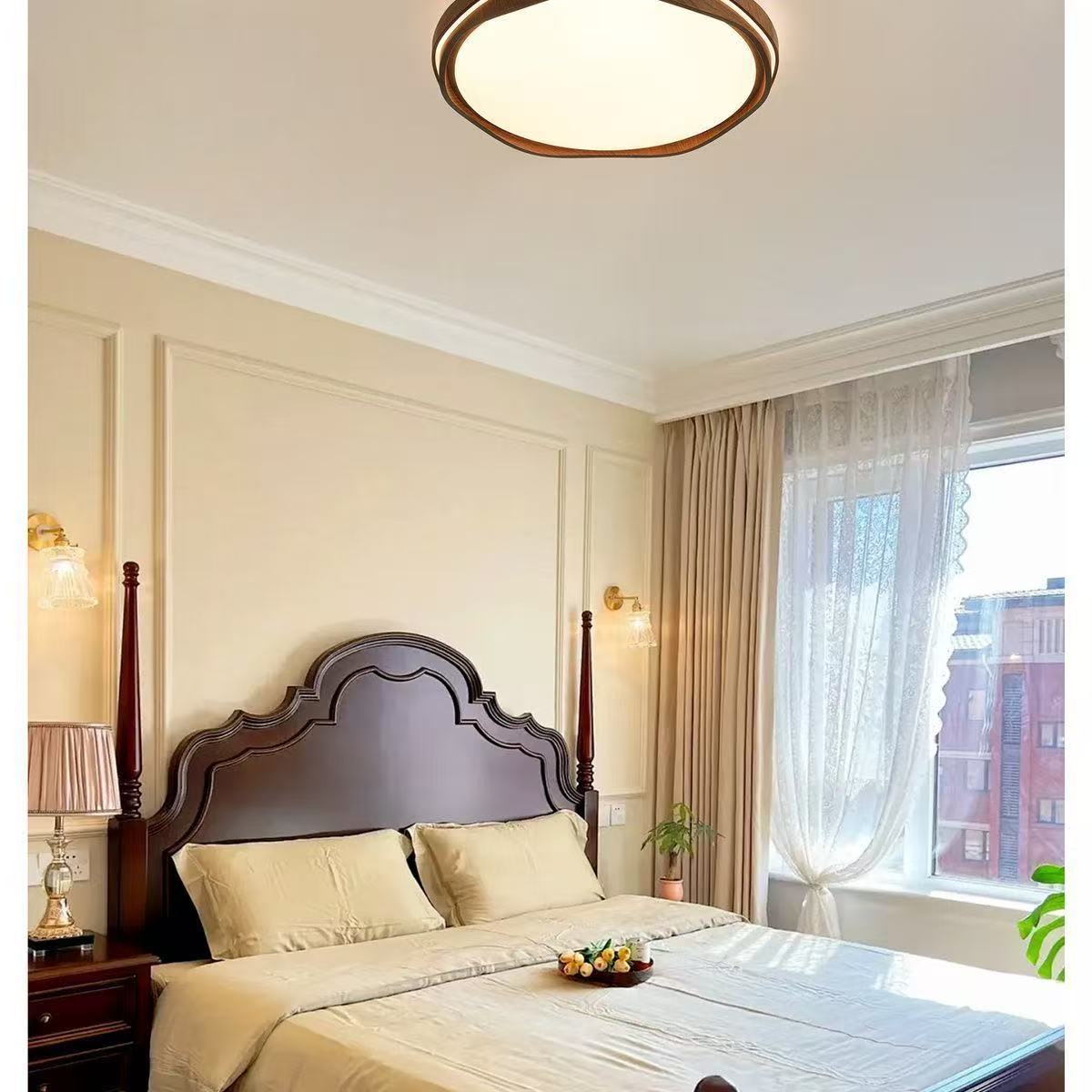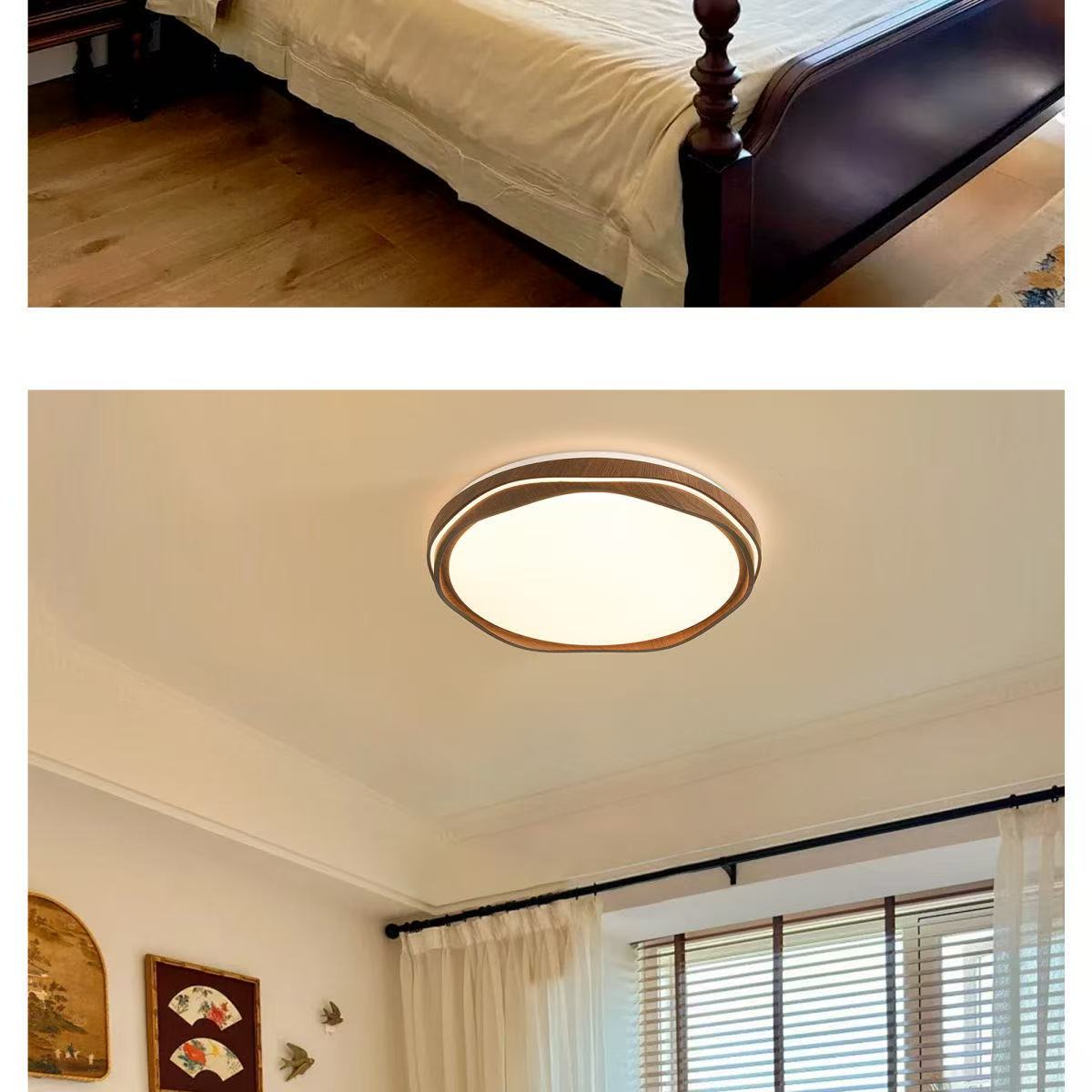 法式中古风卧室吸顶灯复古胡桃木纹餐厅灯护眼书房间灯857