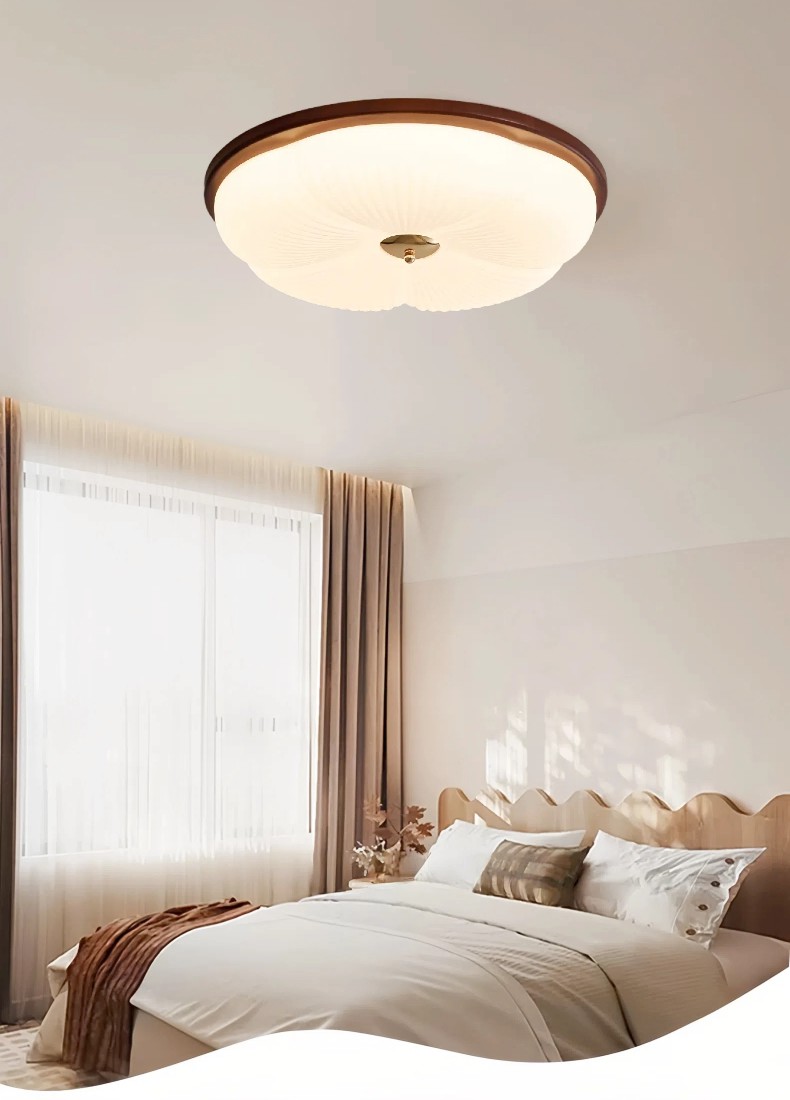 法式中古风卧室吸顶灯复古胡桃木布艺主卧灯南洋风高级感房间灯具864