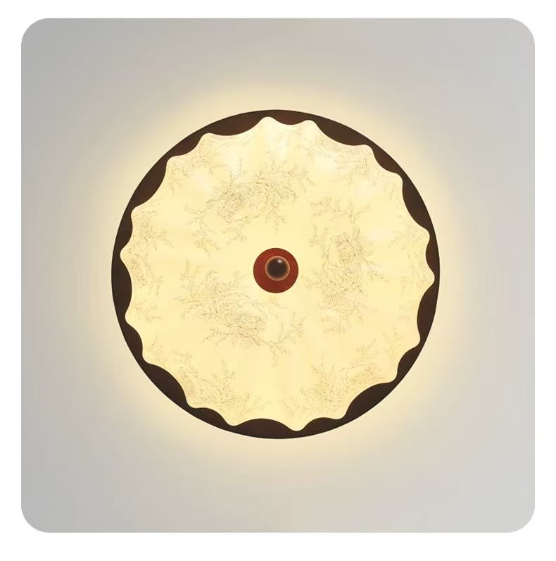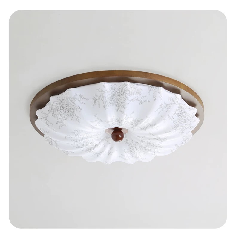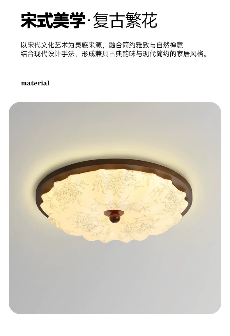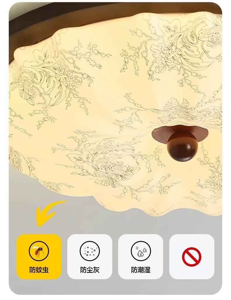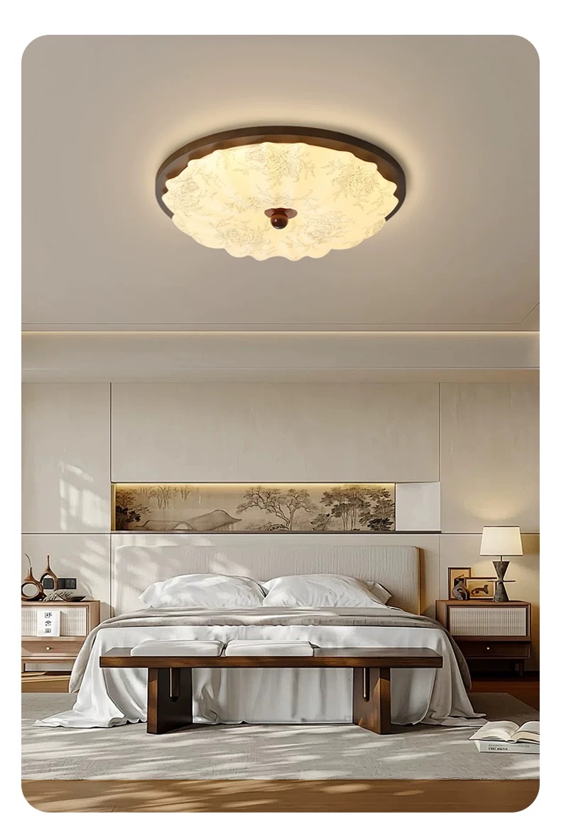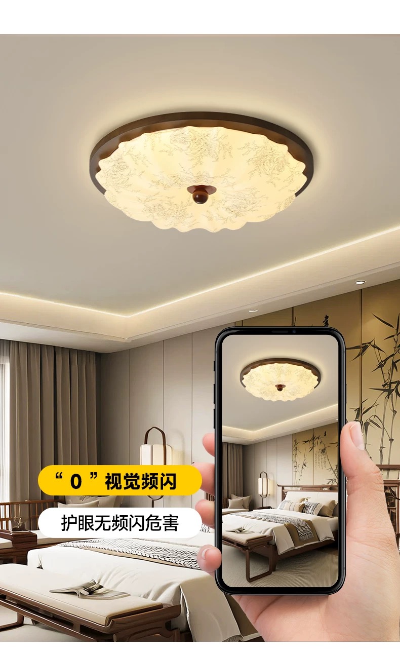 法式中古风卧室吸顶灯复古胡桃木布艺主卧灯南洋风高级感房间灯具867