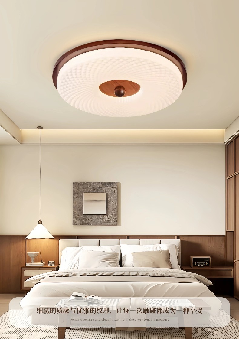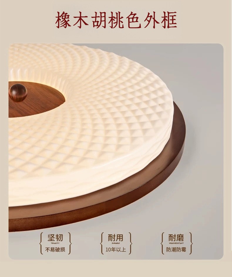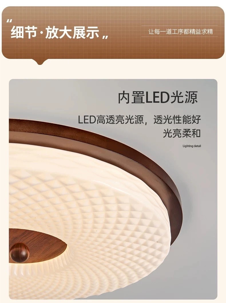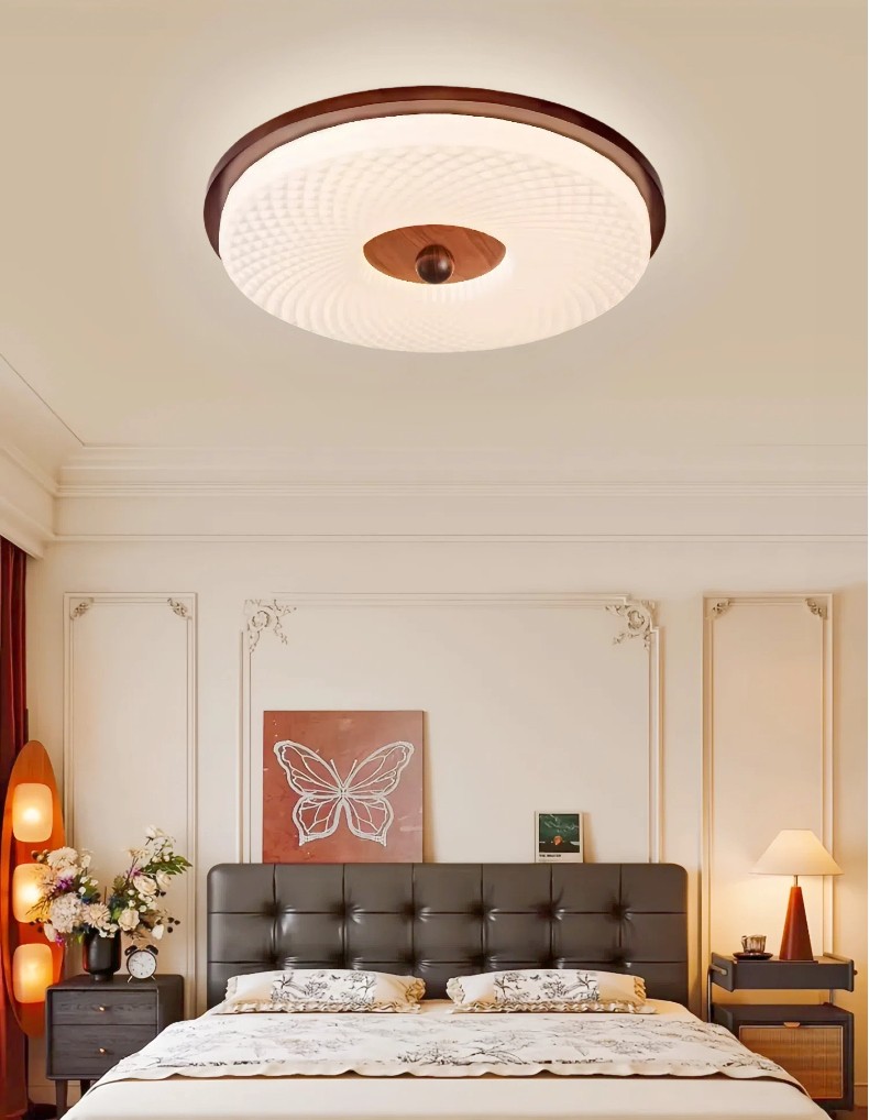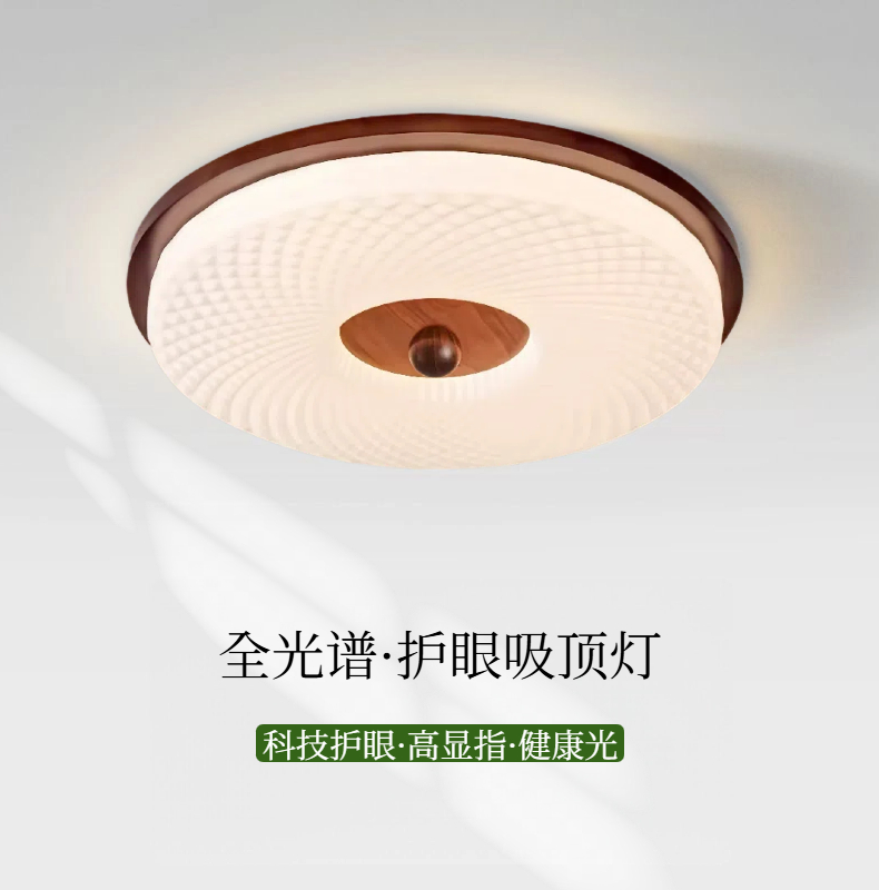 中古风卧室吸顶灯法式复古胡桃木色主卧房间灯书房护眼灯具新款872