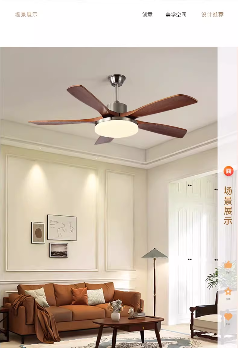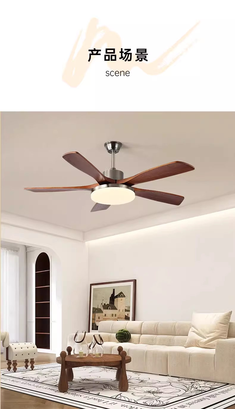 原木风实木侘寂风复古餐厅大风力风扇一体吊灯1093
