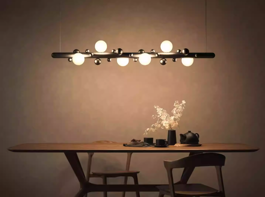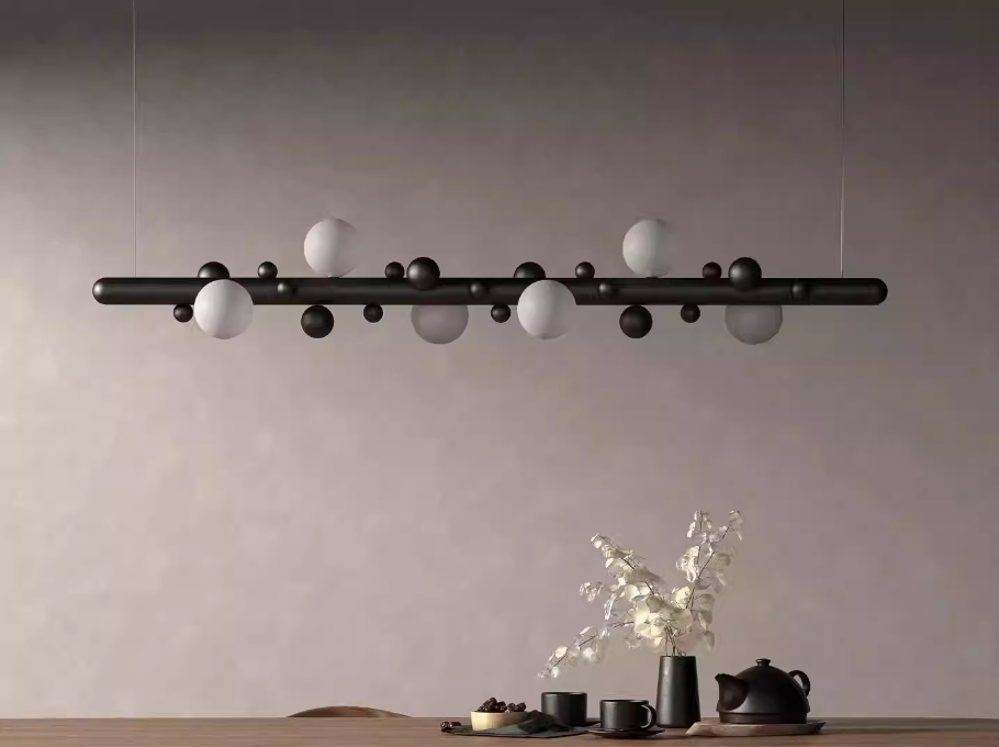 原木纹魔豆泡泡仿实木日式吧台长条饭厅灯具6105