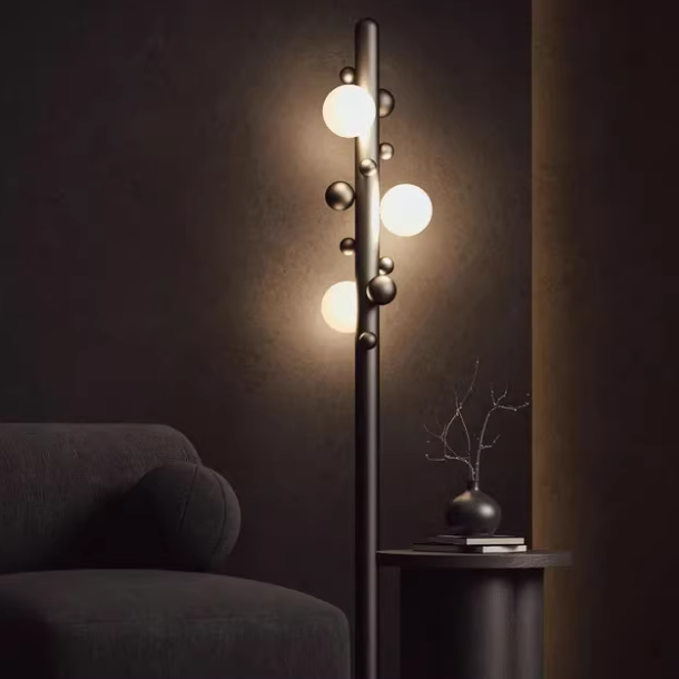 原木纹魔豆泡泡仿实木落地灯具6105