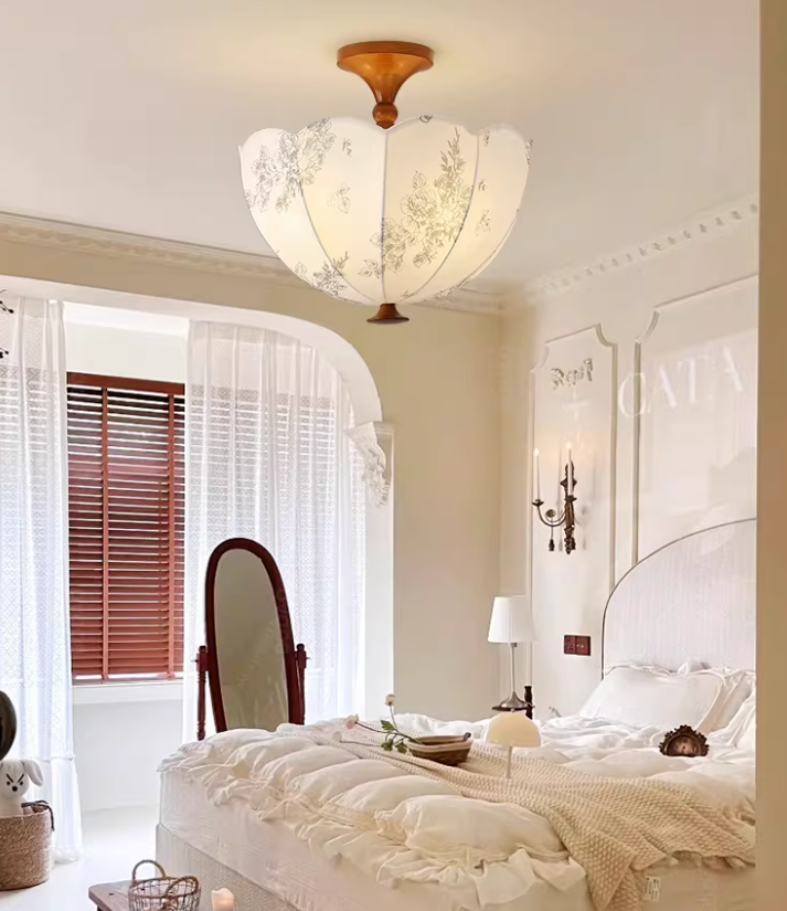 白蜡木实木+印花布艺灯罩+五金