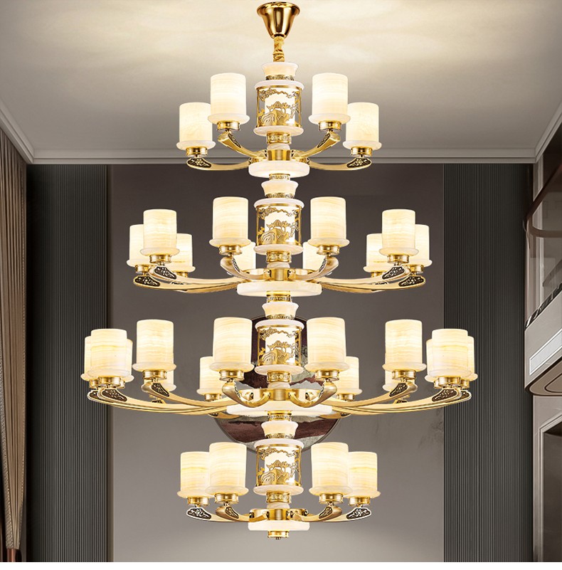 全铜灯臂+玉石锅底+玉石灯罩+铁艺