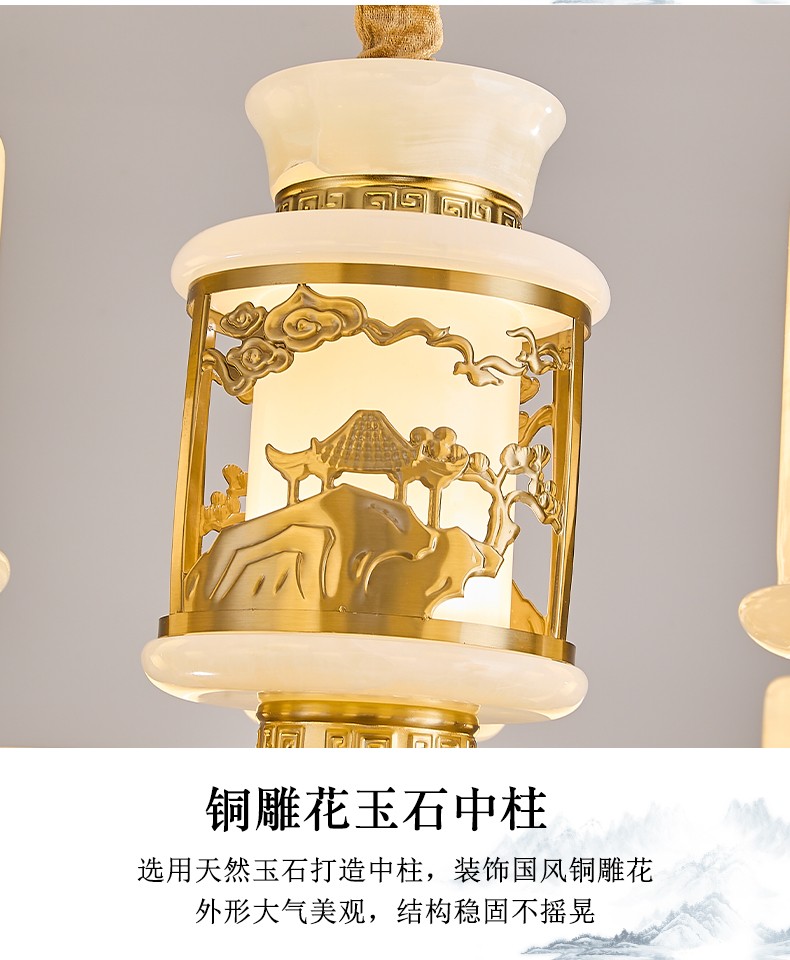 全铜灯臂+玉石锅底+玉石灯罩+铁艺