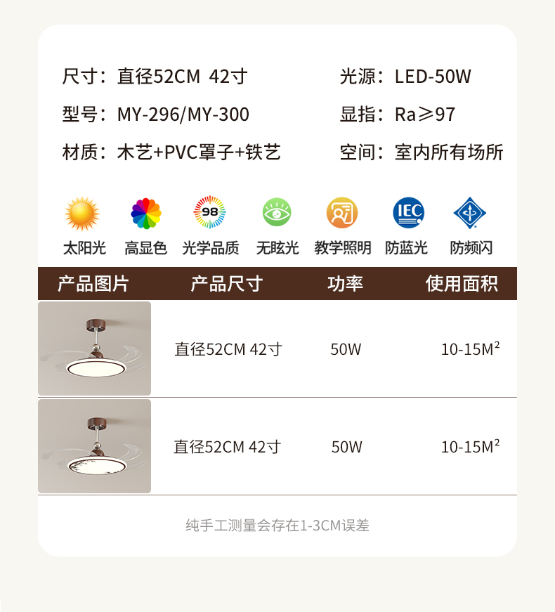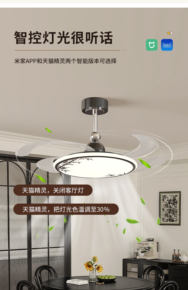 42寸/50W/黑色/隐形风扇灯/离线语音