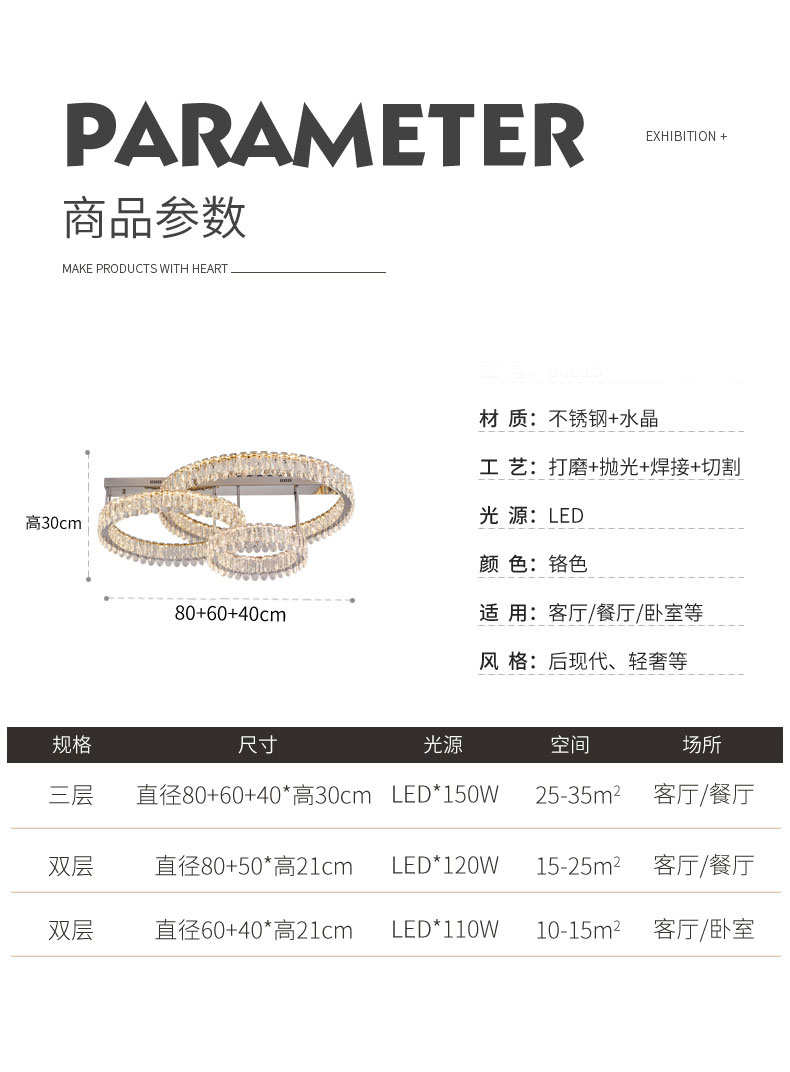 错位三层Φ800+600+400*H300 150W 天猫精灵