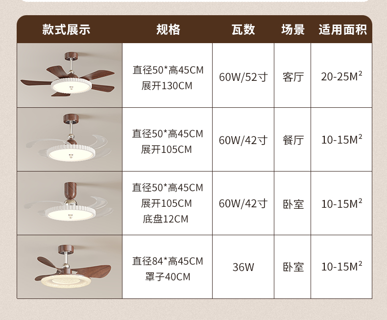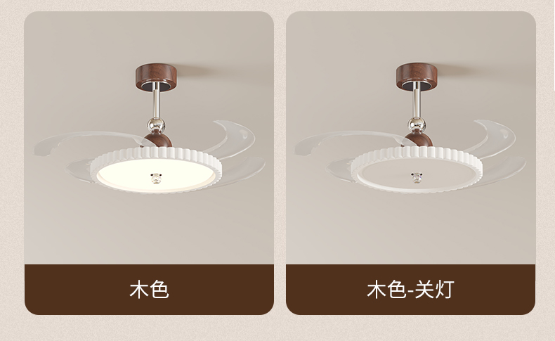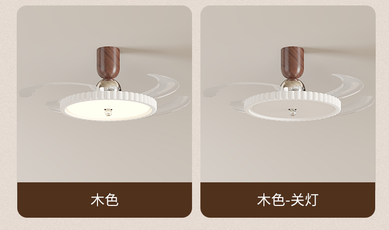 42寸/双球全吊隐形风扇灯/60W/木纹色/离线语音
