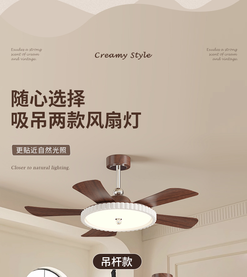 AMY-284/木纹色/双球全吊隐形风扇灯