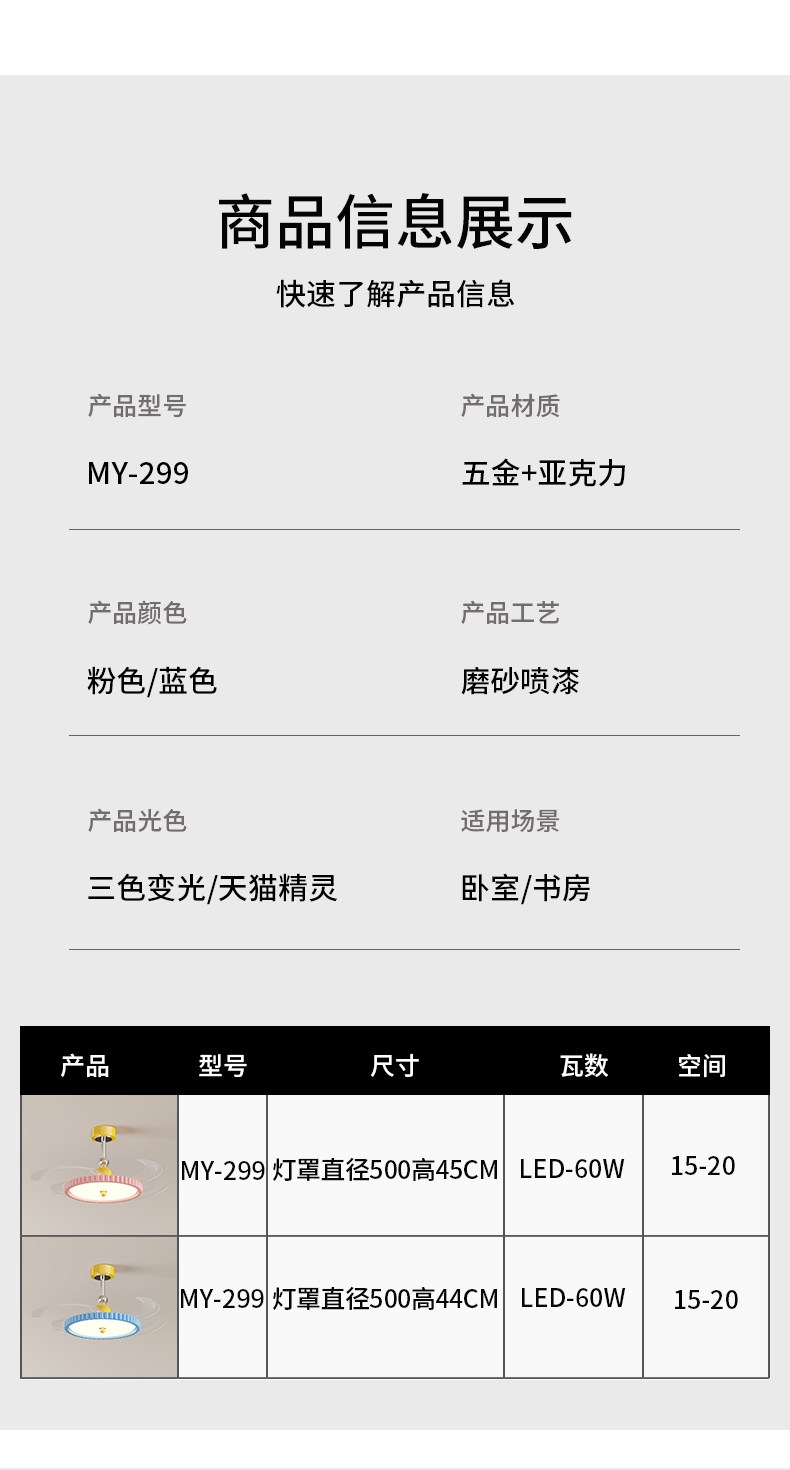 AMY-299/蓝色+黄色/42寸隐形风扇灯