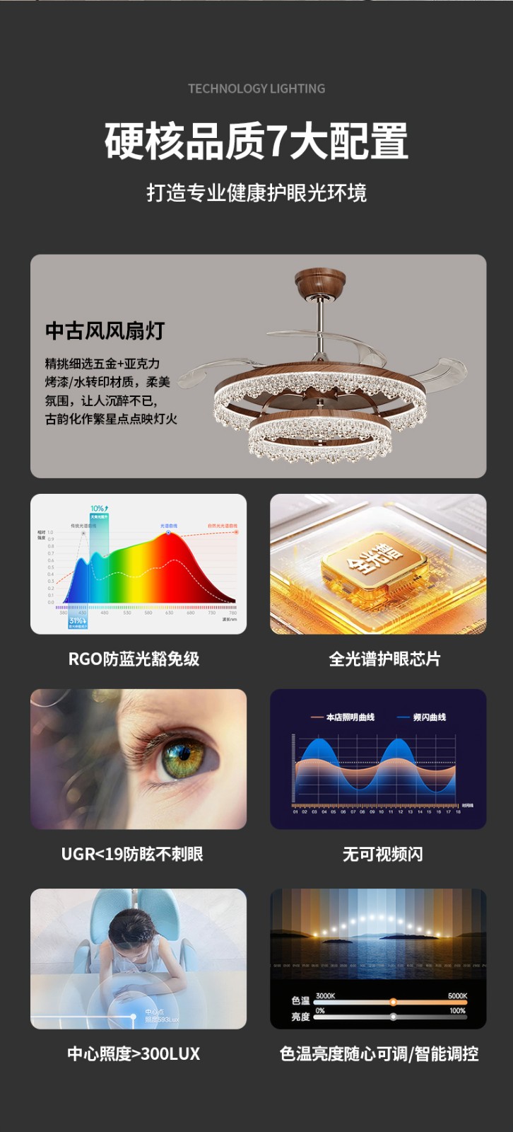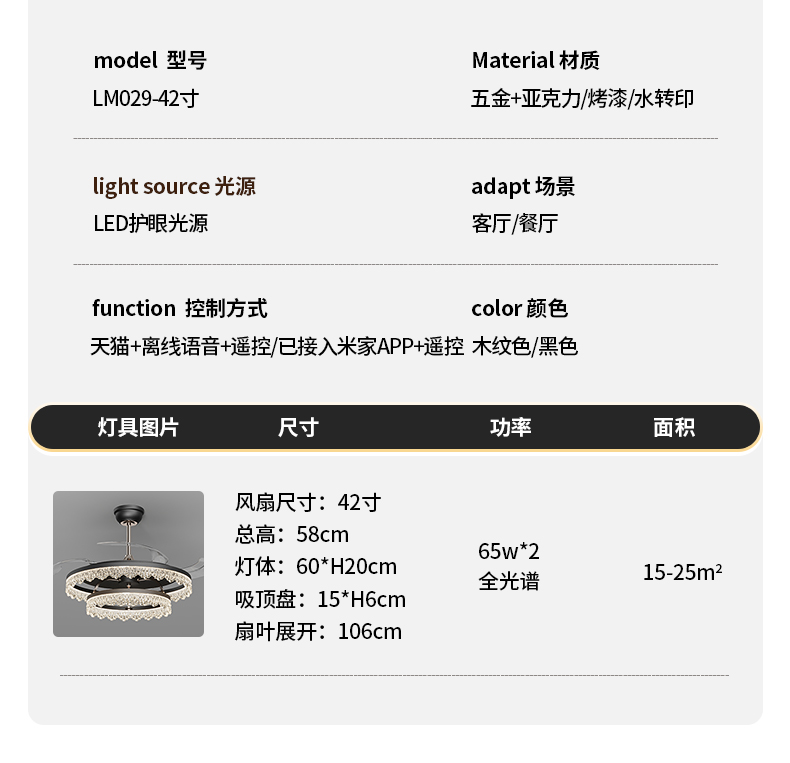 42寸 灯体:60*H20cm 扇叶展开:106cm 62W 米家智能