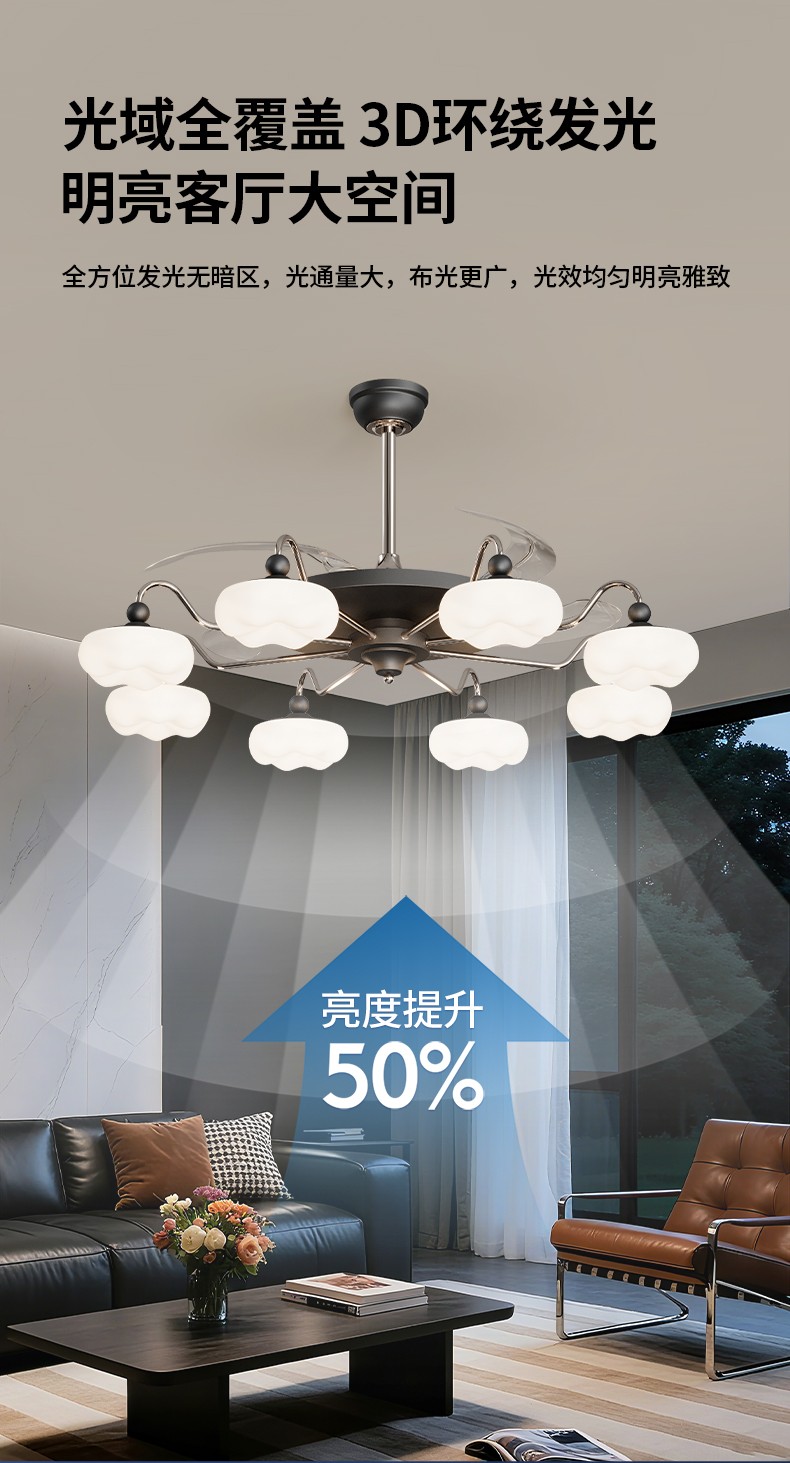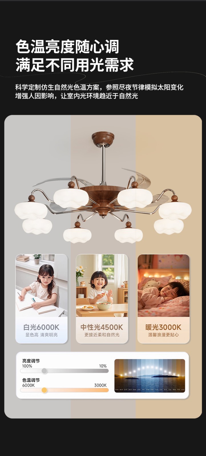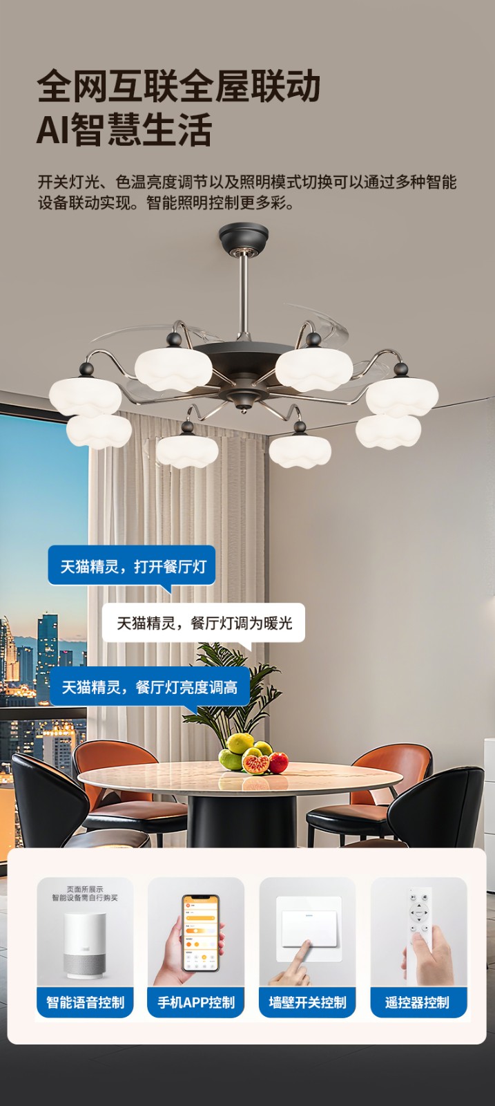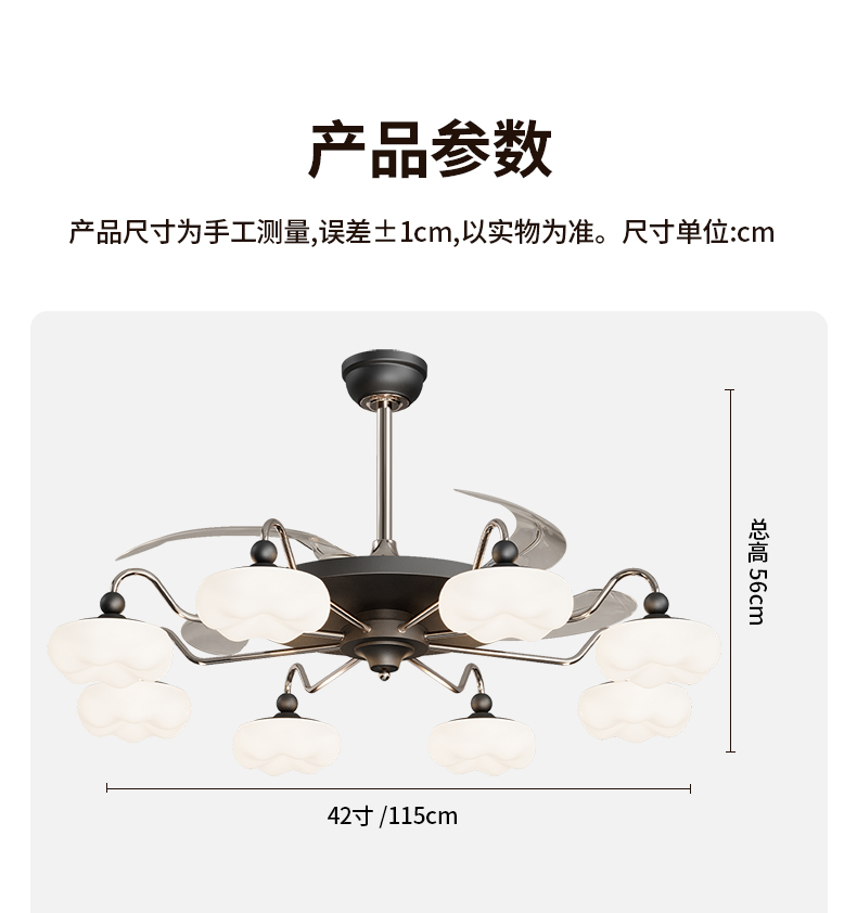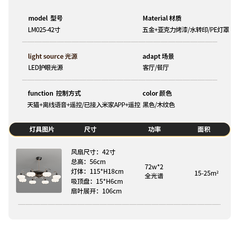 42寸 灯体:115*H18cm 扇叶展开:106cm 72W 天猫+离线语音