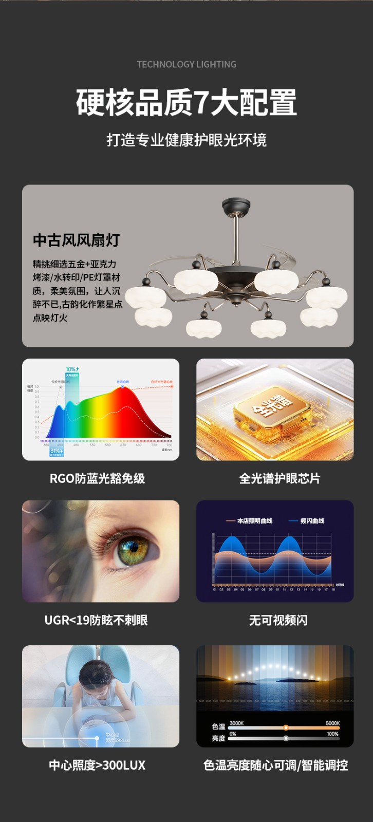 【米家全屋智能】中古风大气创意新款风扇灯025