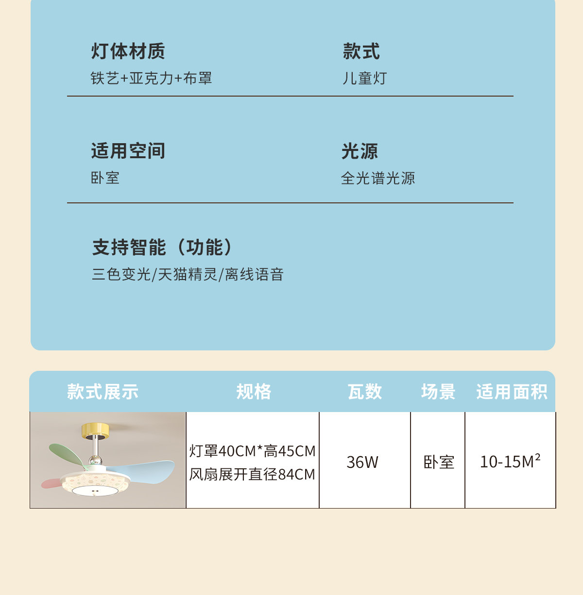AMY-297/蓝绿粉拼色/风扇灯