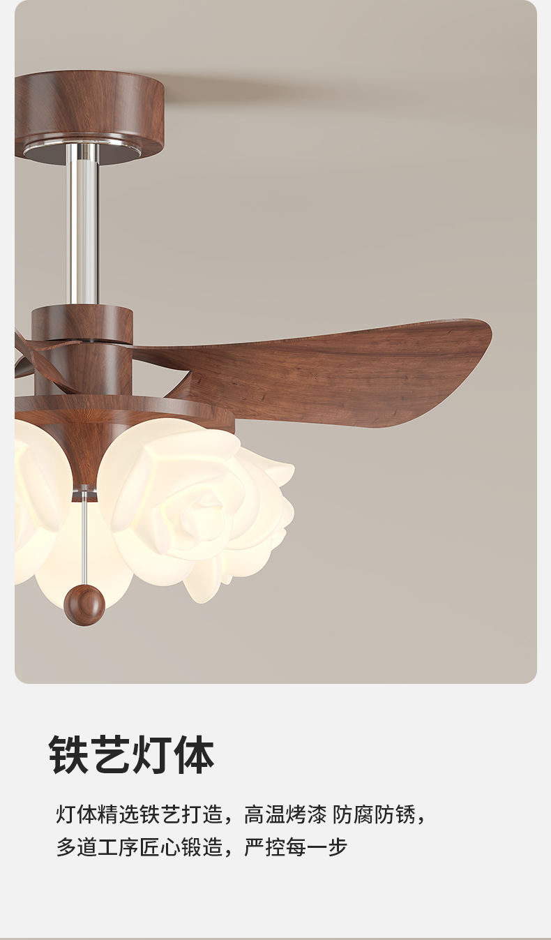 ABS扇叶+滚塑玫瑰罩+铁艺+纯铜电机