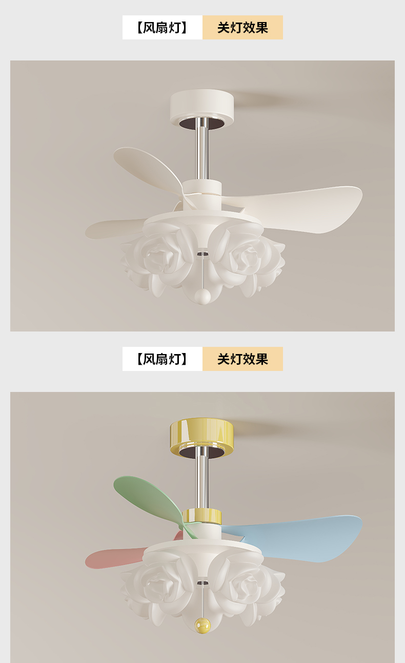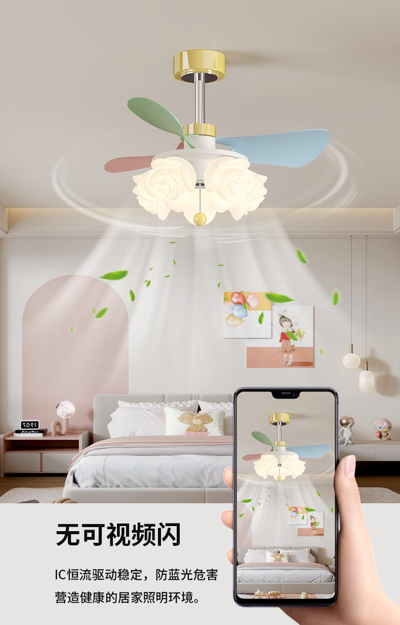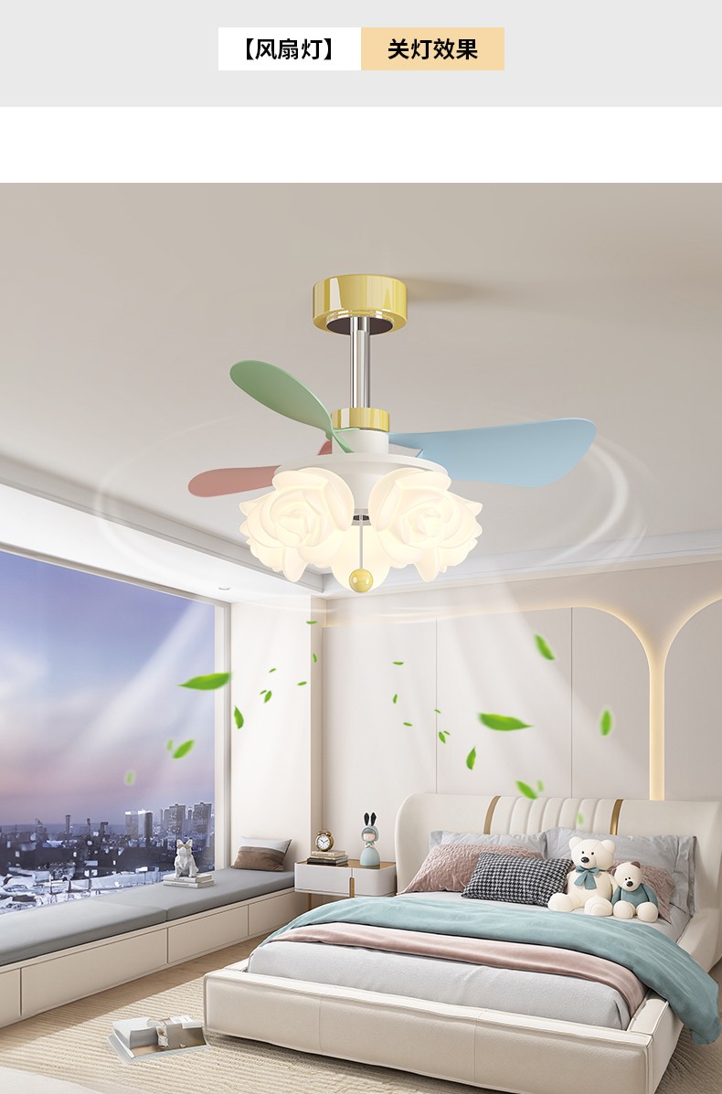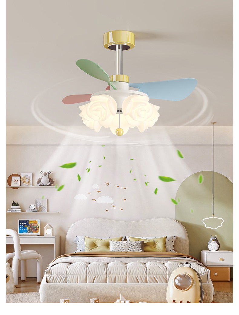 开口叶滚塑玫瑰罩儿童风扇灯MY-302
