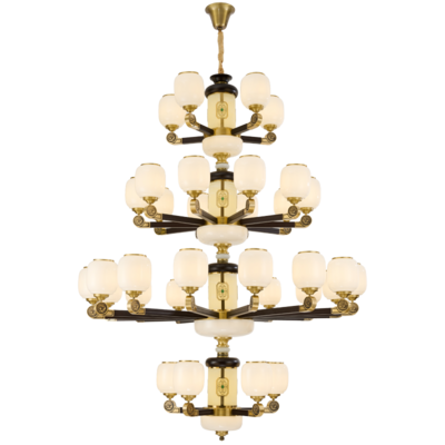 新中式铜+木+玻璃罩灯体 客厅餐厅书房卧室简约吊灯8367