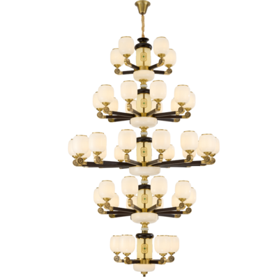 新中式铜+木+玻璃罩灯体 客厅餐厅书房卧室简约吊灯8367