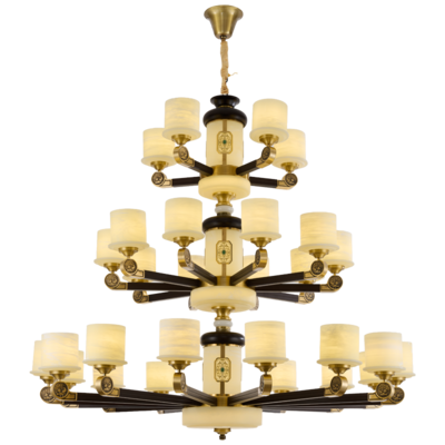 新中式铜+木+仿玉罩 灯体 客厅餐厅书房卧室简约吊灯8367