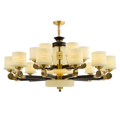 新中式铜+木+仿玉罩 灯体 客厅餐厅书房卧室简约吊灯8367