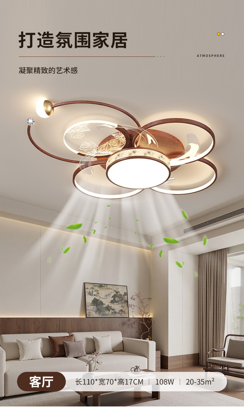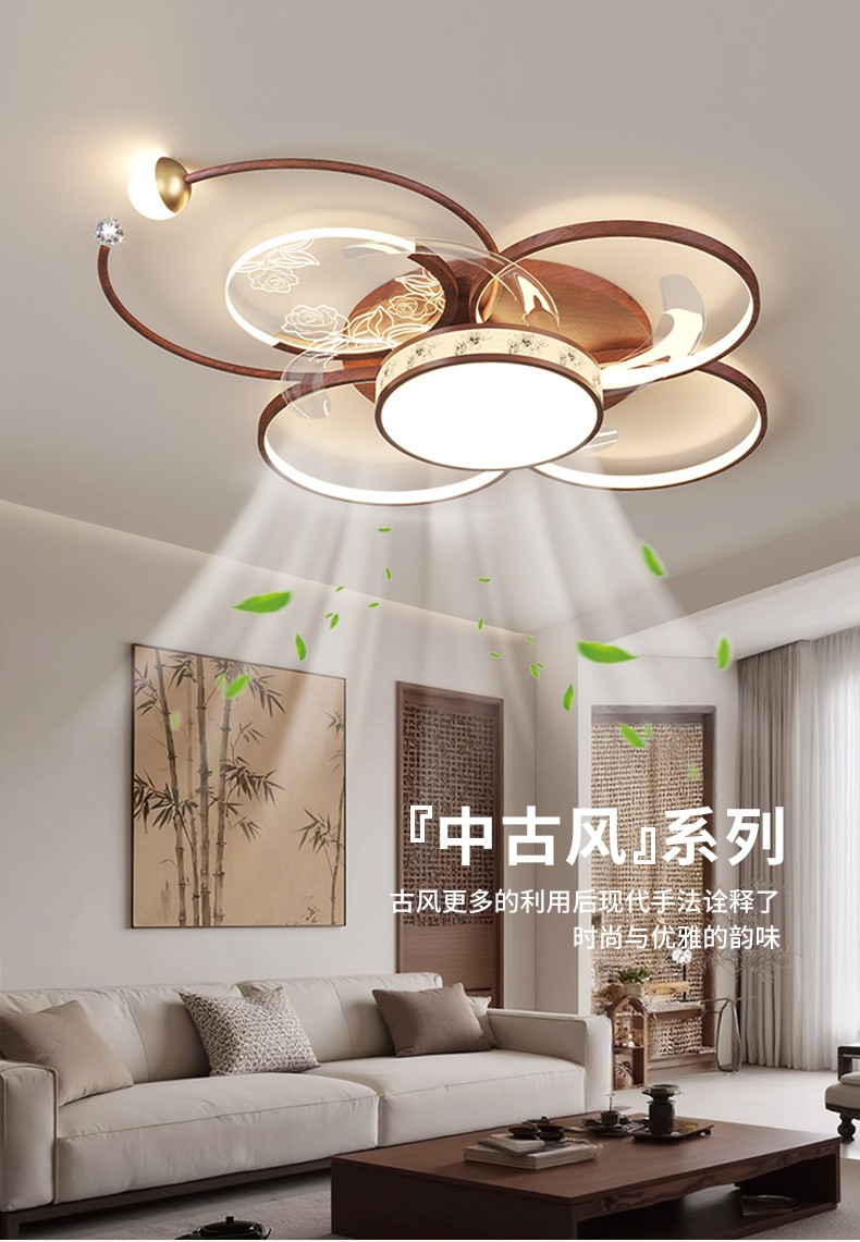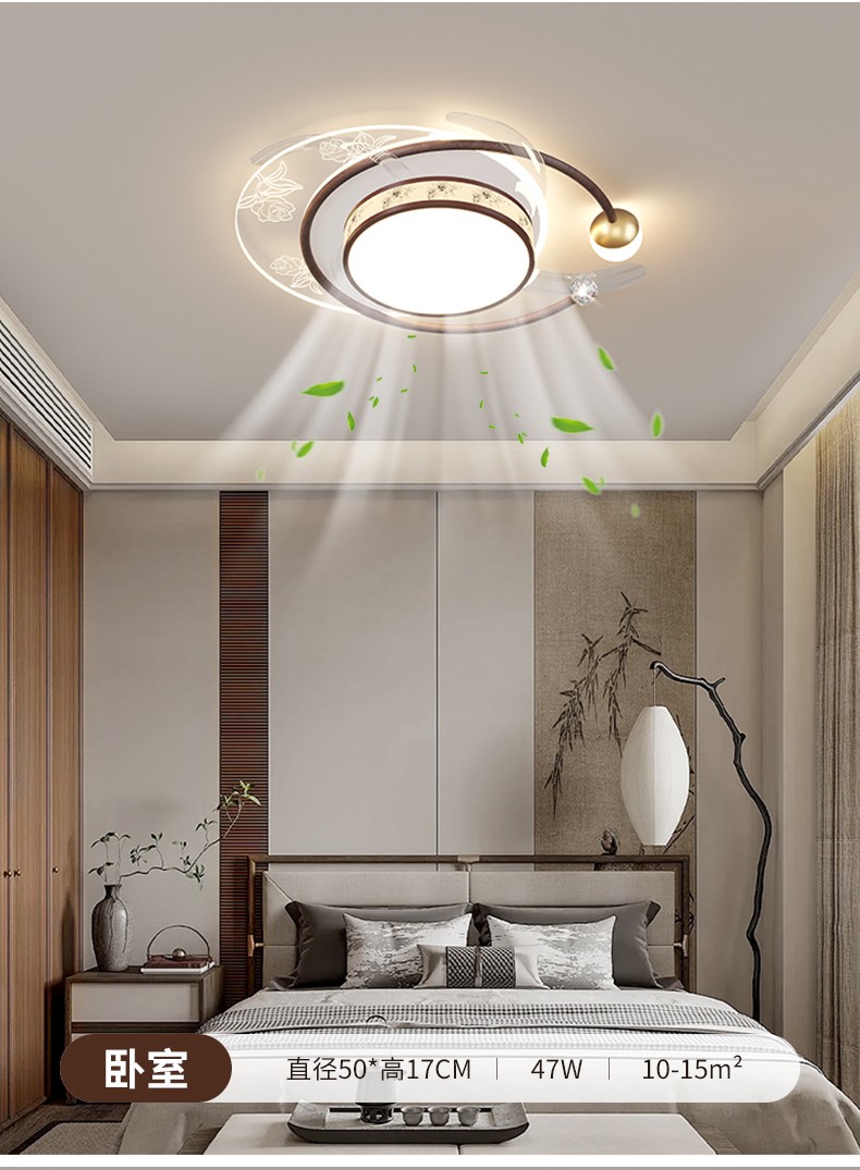 现代简约中古风布艺隐形风扇灯套餐MY-286