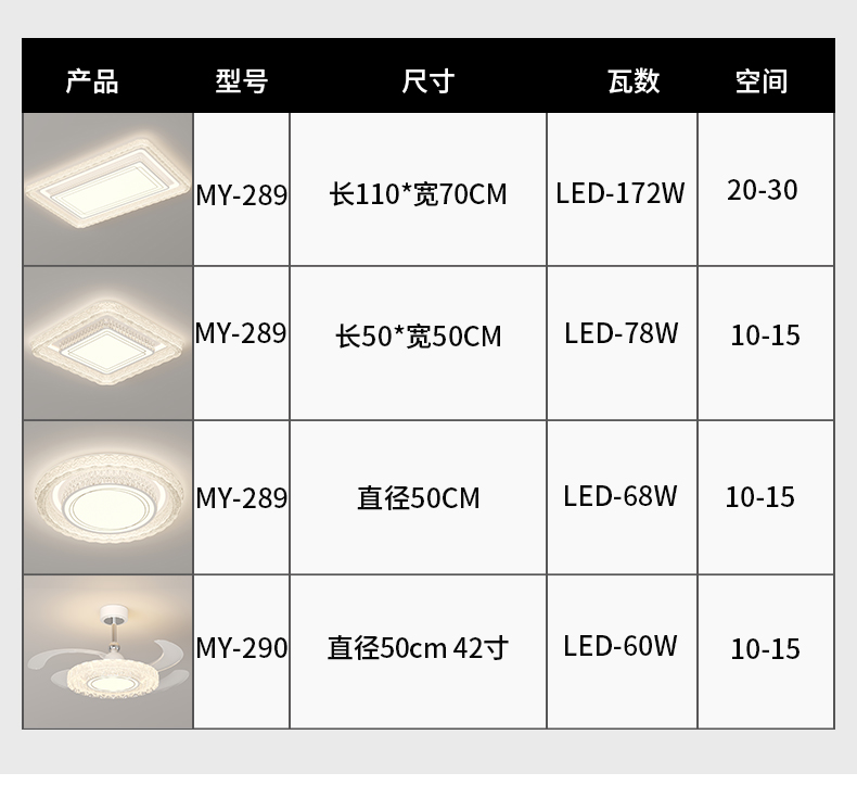 现代简约侧山峰亚克力吸顶灯套餐MY-289
