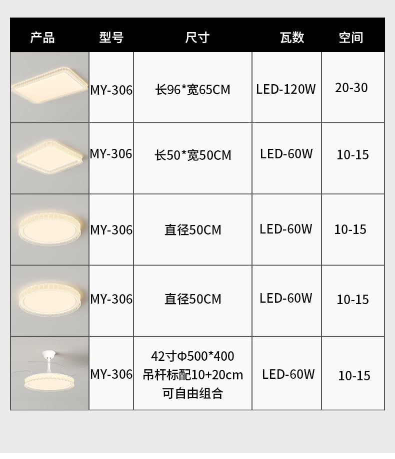 吹塑灯罩现代简约隐形风扇灯MY-306